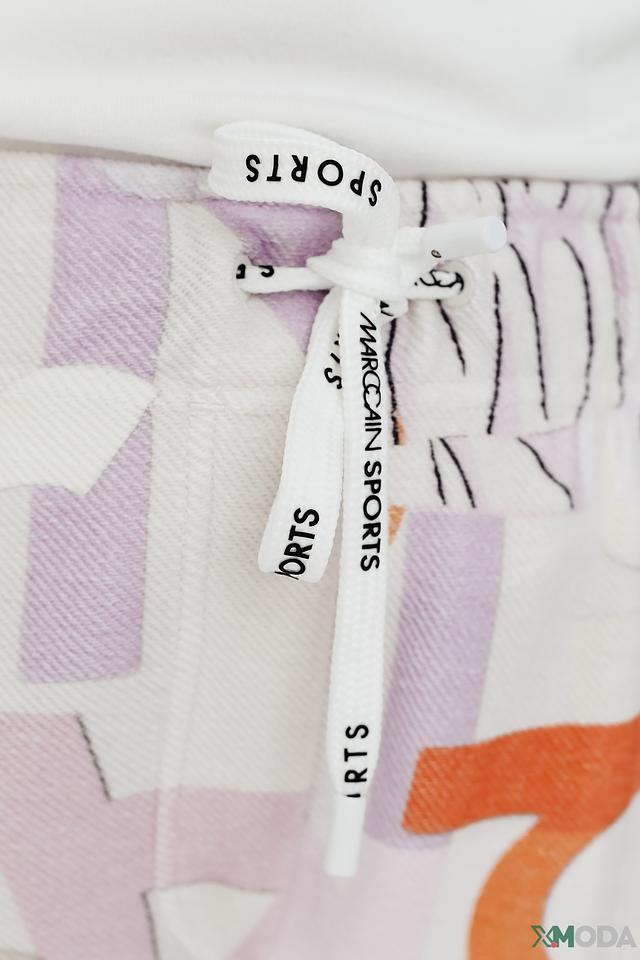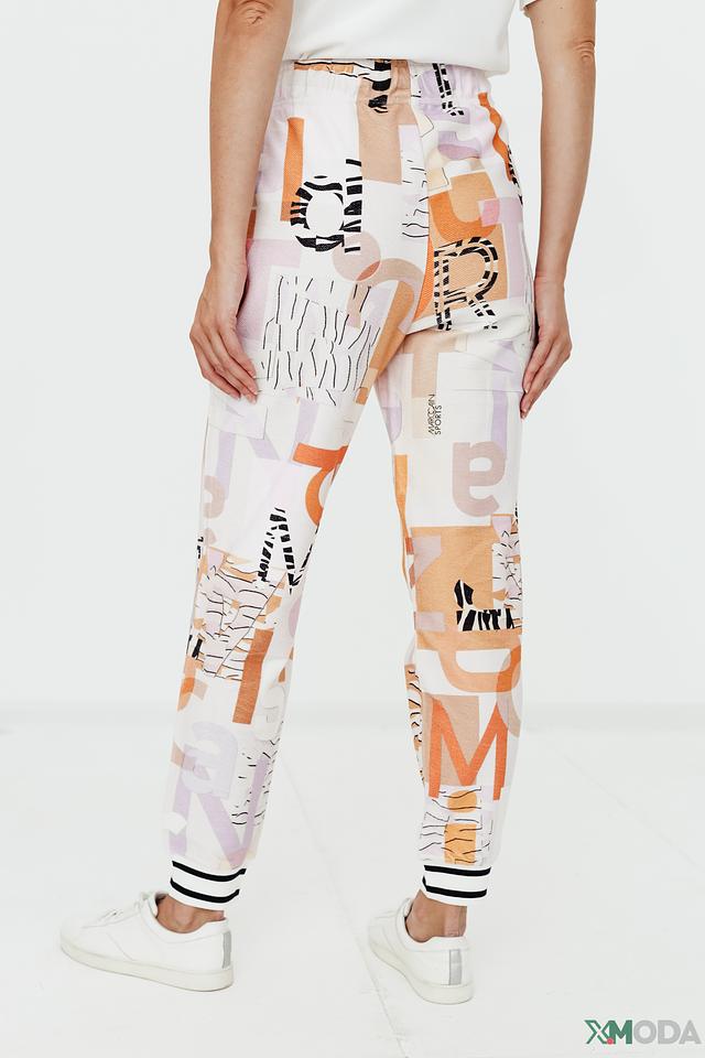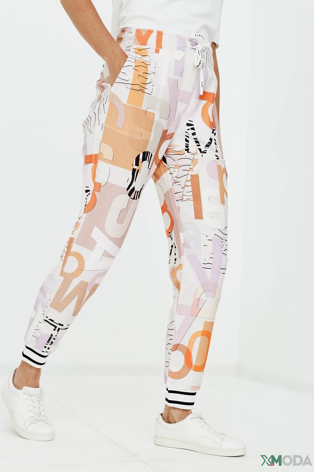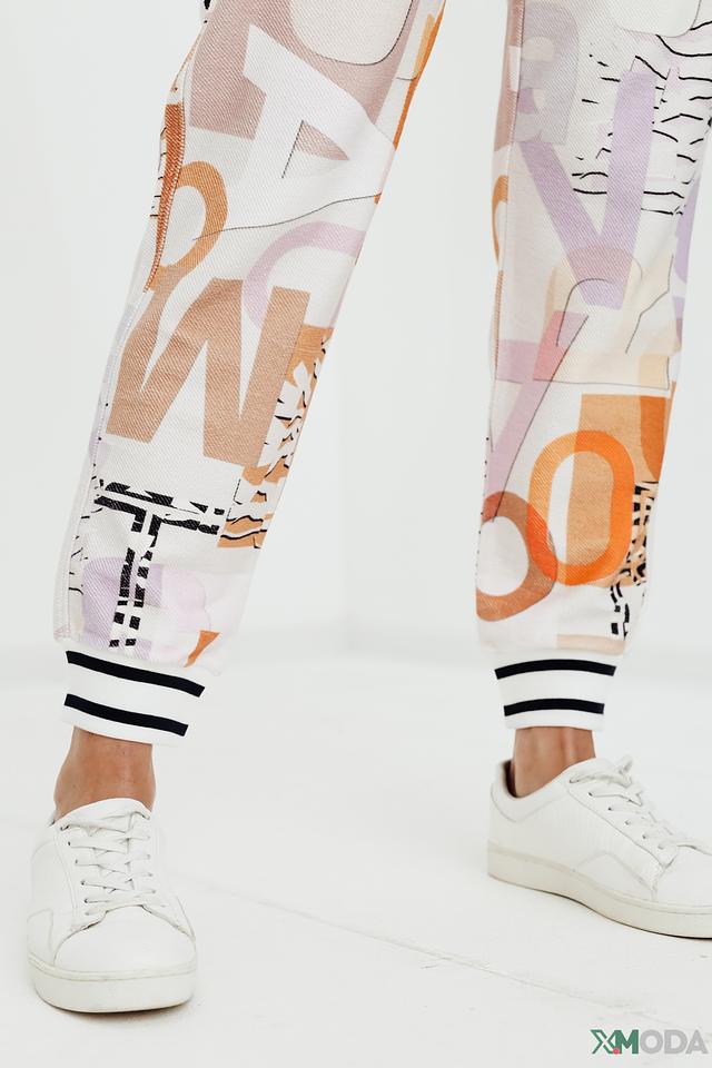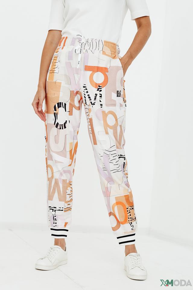 Брюки имеют свободный крой и эластичный пояс с кулиской, что позволяет регулировать посадку. Оригинальный принт с абстрактными элементами и надписями делает эти брюки ярким акцентом в вашем образе.