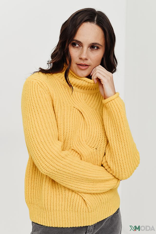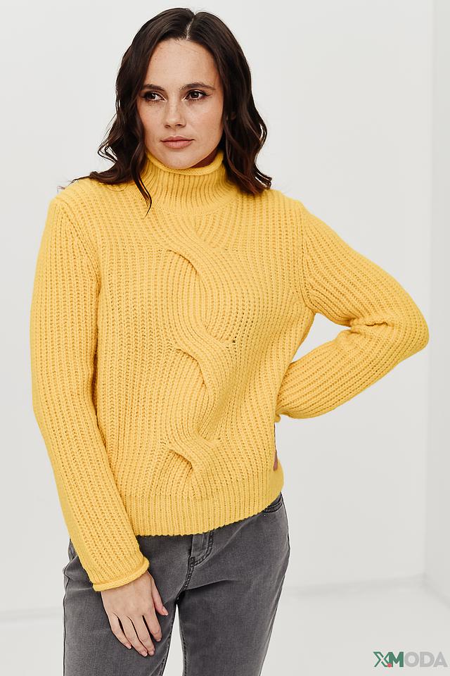 Жёлтый пуловер Marc Cain с объёмной косичкой и высоким воротом станет отличным дополнением к вашему гардеробу. Изготовлен из мягкой смеси акрила, полиамида, альпаки и шерсти, обеспечивающей комфорт и тепло. Состав: акрил 33%, полиамид 28%, альпака 28%, шерсть 11%