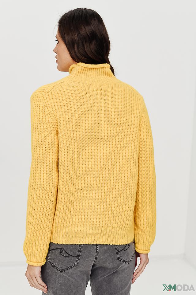 Этот стильный пуловер от Marc Cain выполнен в ярком жёлтом цвете и станет акцентным элементом вашего образа. Высокий воротник и объёмная коса придают модели оригинальность и шарм.
