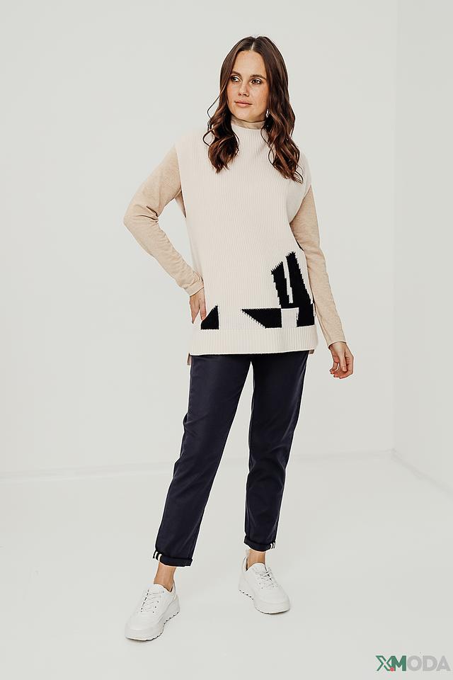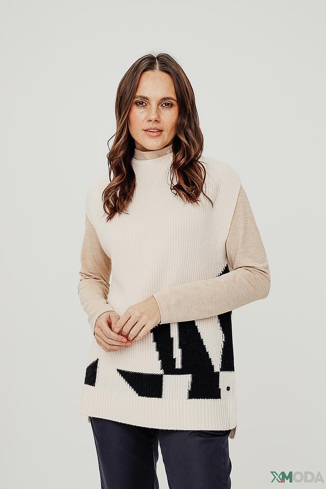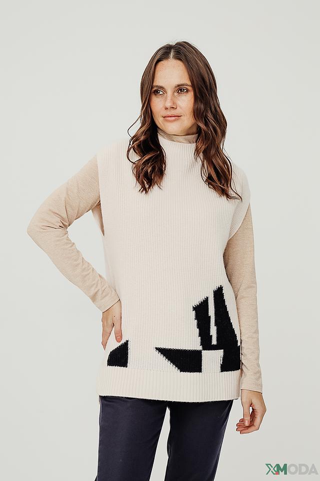 Бежевый жилет Marc Cain с оригинальным чёрно-белым графичным рисунком станет стильным дополнением к вашему гардеробу. Модель выполнена из мягкой смеси шерсти и кашемира, обеспечивающей комфорт и тепло. Состав: шерсть 90%, кашемир 10%