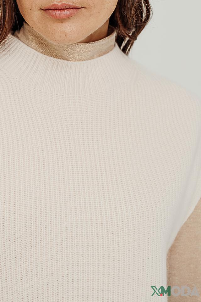 Жилет имеет прямой крой и удобную длину. Высокий воротник-стойка добавляет элегантности. Изготовлен из высококачественной смеси шерсти (90%) и кашемира (10%), что обеспечивает мягкость, тепло и комфорт в носке.