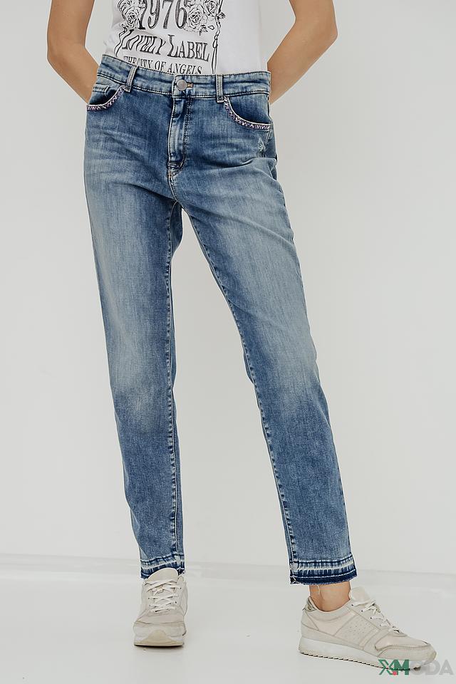 Голубые джинсы от Marc Cain с эффектом потертости и декоративной вышивкой. Модель выполнена из органического хлопка с добавлением эластана для комфортной посадки и свободы движений. Состав: хлопок органич. 92%, эластомультиэстер 6%, эластан 2%
