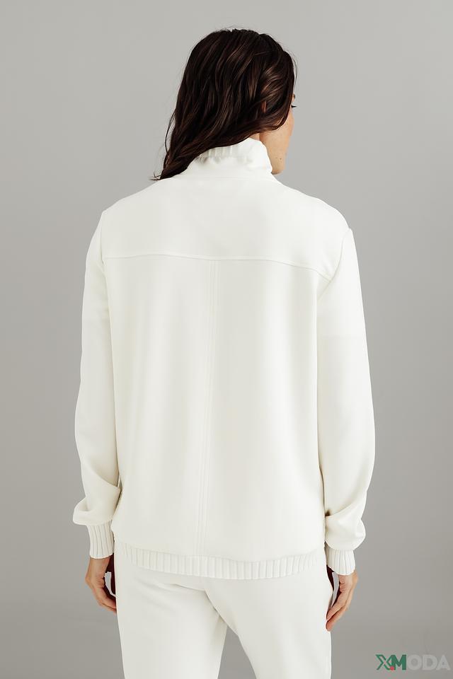 Куртка имеет удобную застежку-молнию, воротник-стойку и манжеты в рубчик. Модель выполнена из высококачественного материала, состоящего из модала, полиамида и эластана, что обеспечивает комфорт и свободу движений.