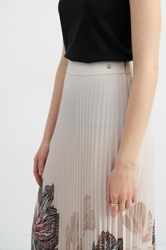 Юбка изготовлена из 100% переработанного полиэстера, что делает ее не только стильной, но и экологичной. Идеально сочетается с однотонными топами и блузками, создавая элегантный и женственный образ.