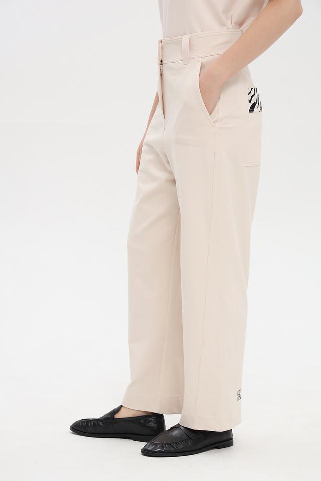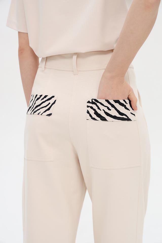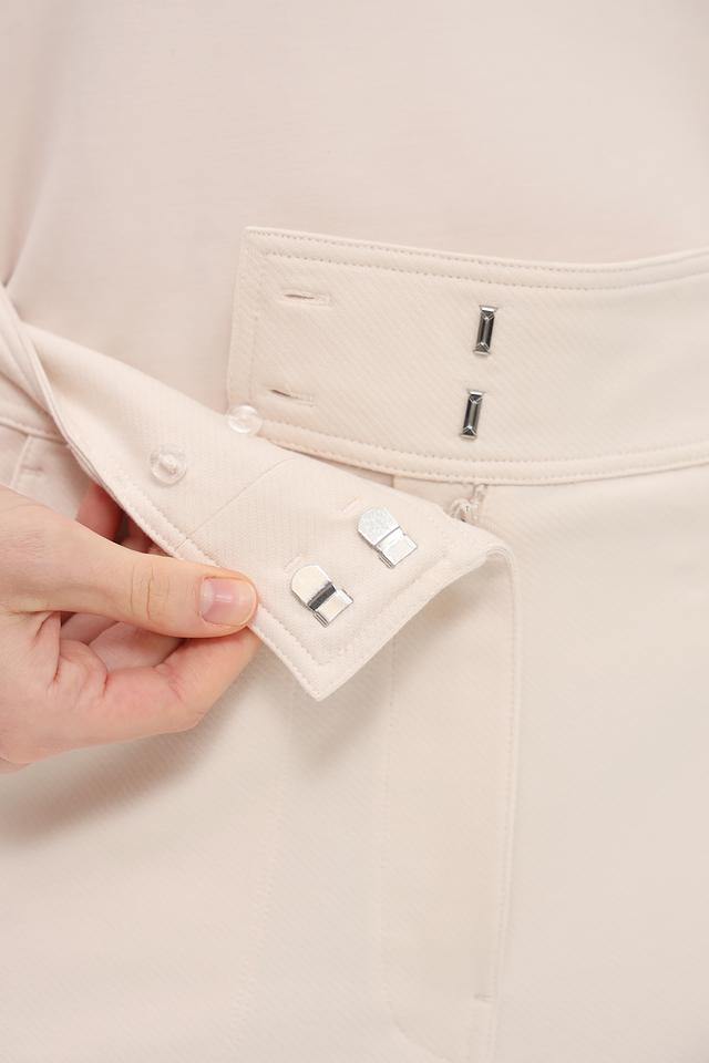 Классический крой брюк обеспечивает комфортную посадку по фигуре, а пояс с застежкой на пуговицы и молнию позволяет регулировать облегание. Модель дополнена боковыми карманами и задними карманами с декоративной отделкой.