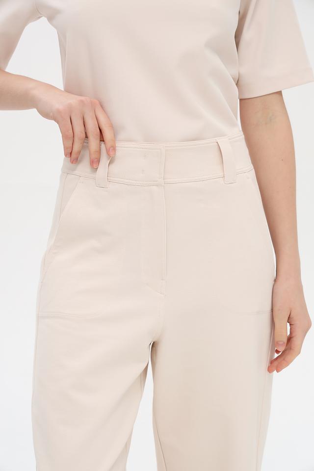 Бежевые брюки от Marc Cain — это элегантное и комфортное решение для создания стильного образа. Классический крой и пояс с застежкой подчеркивают безупречный вкус, а состав из хлопка с добавлением эластана обеспечивает удобство в носке. Состав: хлопок 95%, эластан 5%