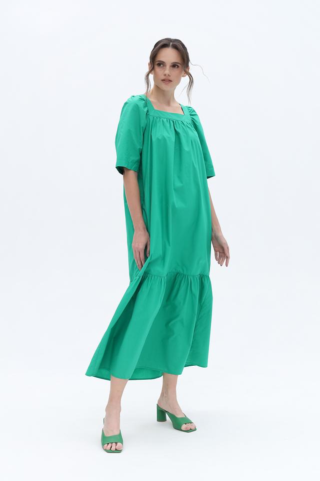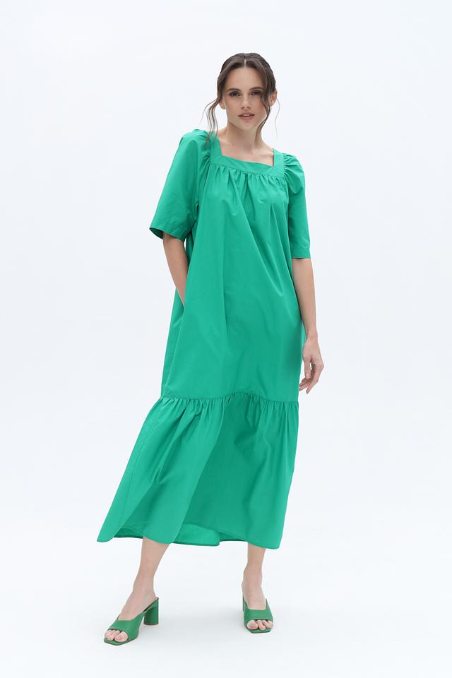 Благодаря своему лаконичному дизайну и универсальному зеленому цвету, это платье станет отличным дополнением к вашему гардеробу. Оно идеально подойдет для создания как повседневных, так и более нарядных образов. Состав: хлопок 59%, лиоцел 41%.
