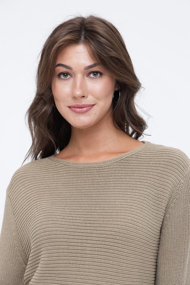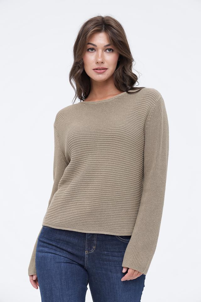 Пуловер имеет классический силуэт с круглым вырезом горловины и длинными рукавами. Текстурная вязка добавляет изделию визуальный интерес и делает его более оригинальным.