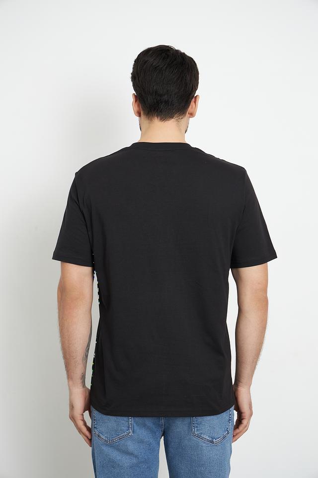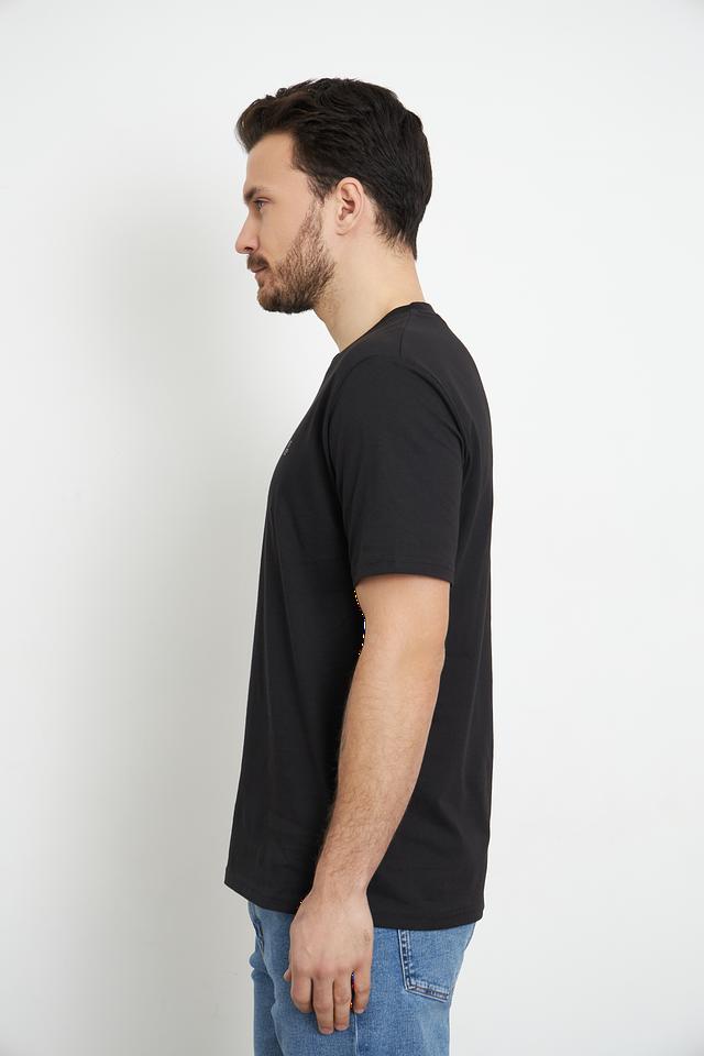Футболка имеет лаконичный дизайн, дополненный небольшим логотипом бренда на груди. Чёрный цвет делает её легко сочетаемой с другими элементами гардероба, от джинсов до шорт.