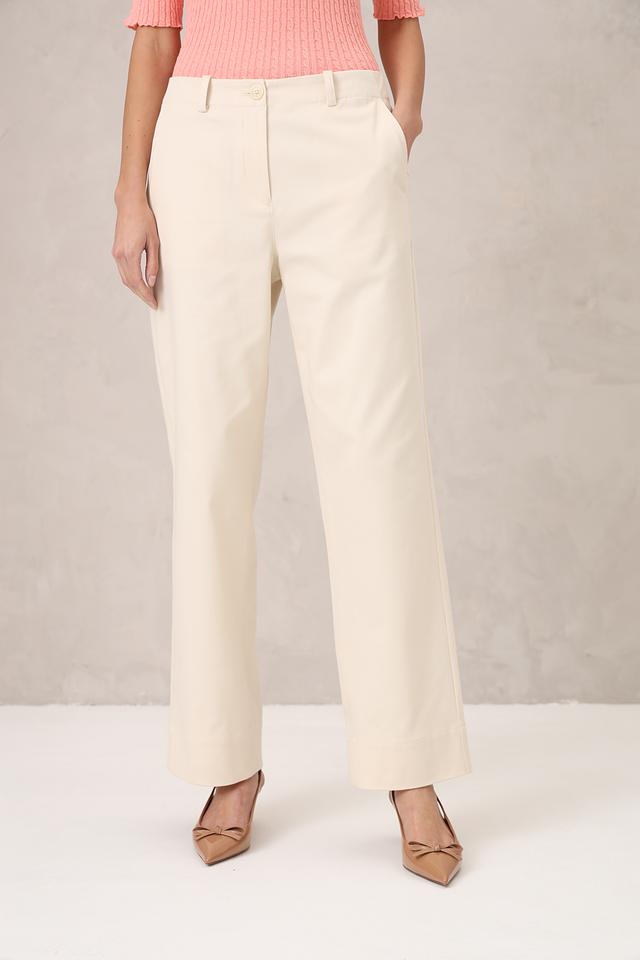Брюки имеют прямой крой, который подходит для любого типа фигуры. Нейтральный бежевый цвет позволяет легко сочетать их с различными элементами одежды, создавая стильные и элегантные образы.