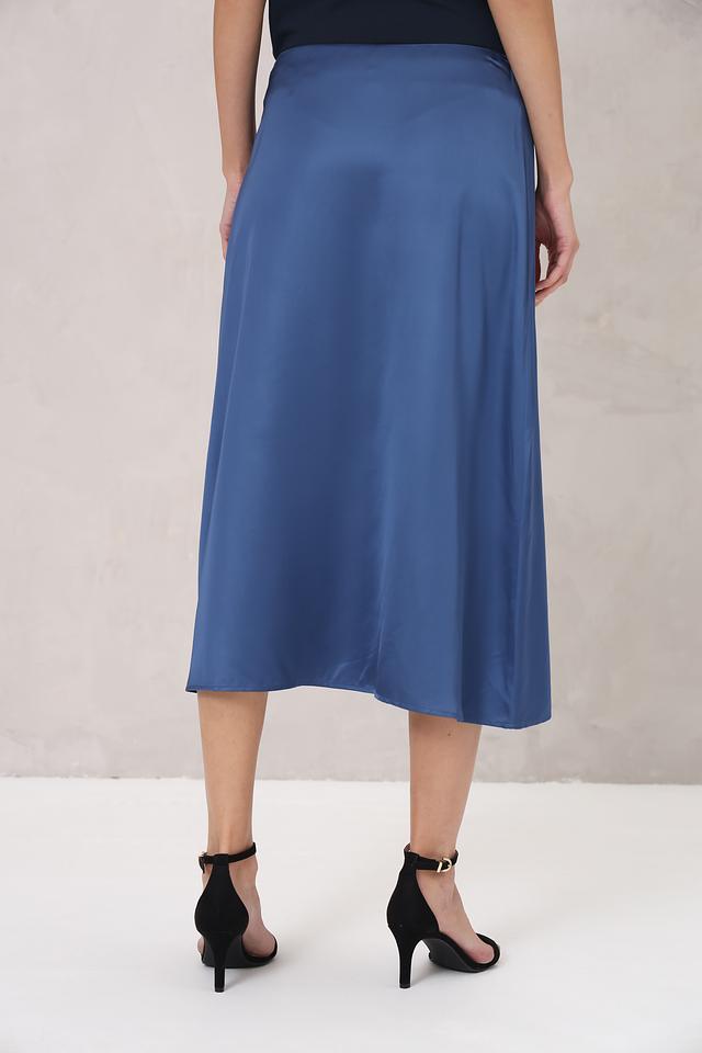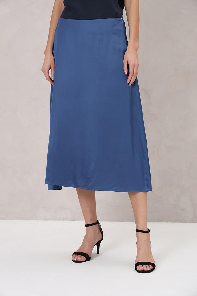 Атласная текстура придает юбке благородный блеск и делает ее идеальным выбором для вечерних выходов или особых случаев. Застежка-молния сбоку обеспечивает удобство надевания и снятия. Юбка не имеет карманов и декоративных элементов, что подчеркивает ее минималистичный дизайн.