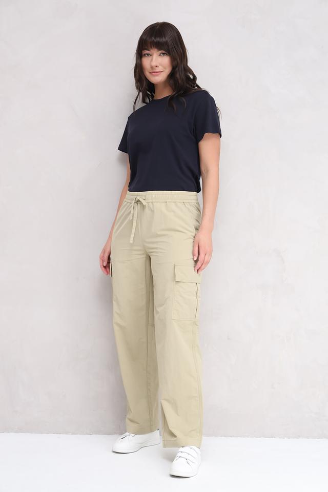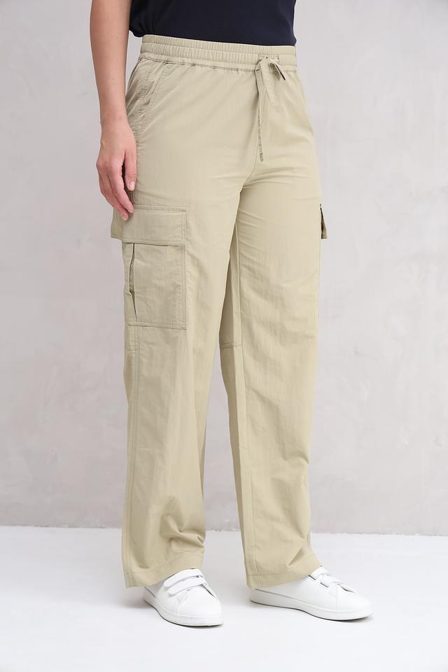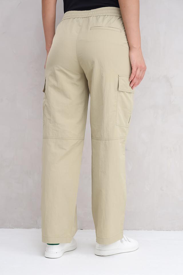 Брюки имеют прямой крой и эластичный пояс с регулирующими шнурками, обеспечивающими идеальную посадку по фигуре. Функциональные накладные карманы добавляют практичности и подчеркивают характерный стиль карго. Изготовленные из 100% полиамида, брюки отличаются лёгкостью, износостойкостью и простотой в уходе.