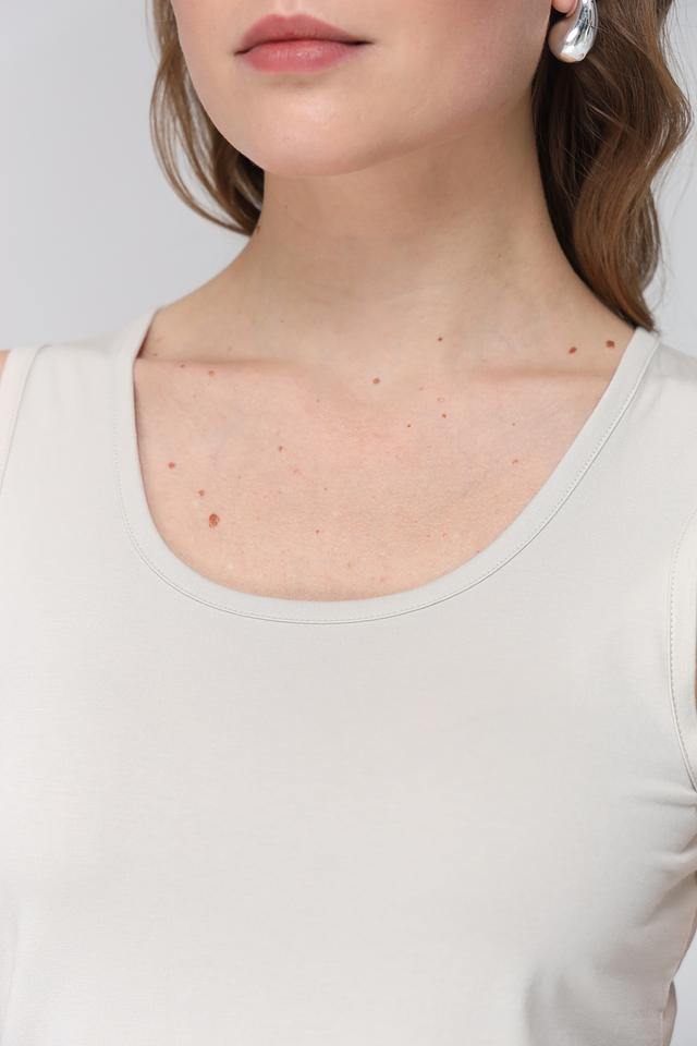 Округлый вырез горловины и отсутствие рукавов делают этот топ идеальным для теплой погоды. Он отлично подойдет для создания повседневных образов, а также для занятий спортом или активного отдыха.