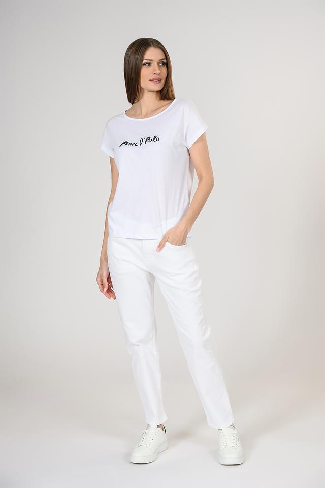 Белая женская футболка Marc O Polo из 100% хлопка – это базовая модель с короткими рукавами и круглым вырезом. Лаконичный дизайн дополнен логотипом бренда на груди. Состав: хлопок 100%