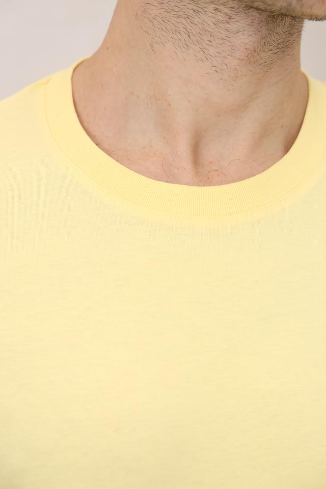 Цвет футболки – нежно-жёлтый, что делает её отличным выбором для создания ярких и стильных образов. На груди расположена небольшая вышивка с логотипом бренда, добавляющая изысканности.