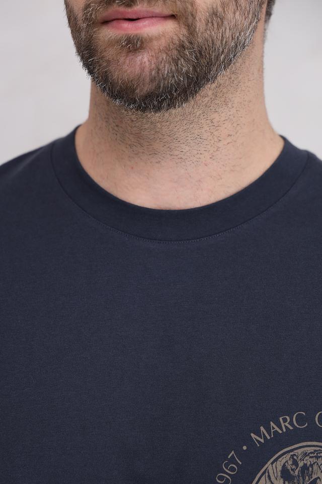 Мужская футболка Marc O Polo тёмно-синего цвета с круглым логотипом на груди. Изготовлена из 100% хлопка, обеспечивающего комфорт и воздухопроницаемость. Классический крой и лаконичный дизайн делают эту футболку универсальным элементом гардероба. Состав: хлопок 100%