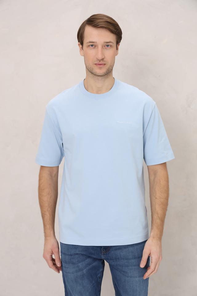 Особенностью данной модели является её лаконичный дизайн. На груди располагается небольшая вышивка с логотипом бренда, выполненная в тон ткани. Круглый вырез горловины и короткие рукава делают футболку идеальным выбором для тёплой погоды.
