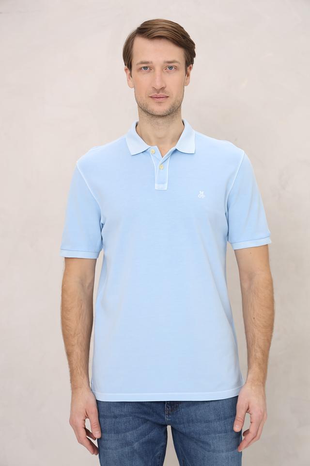 Воротник поло оформлен пуговицами, что позволяет регулировать степень прилегания. Цвет поло – нежный голубой, который легко сочетается с различными оттенками и стилями одежды. Небольшой логотип бренда вышит на груди, добавляя изделию узнаваемости.