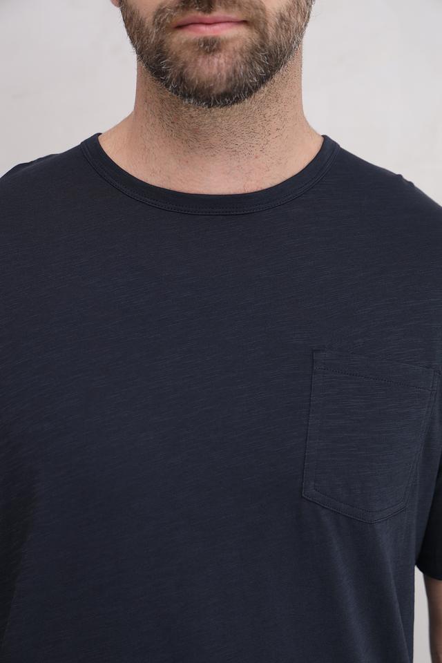 Основным элементом дизайна является накладной карман на груди, который добавляет футболке функциональности и стиля. Цвет футболки – насыщенный темно-синий, который легко сочетается с различными элементами одежды.