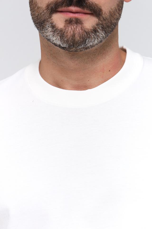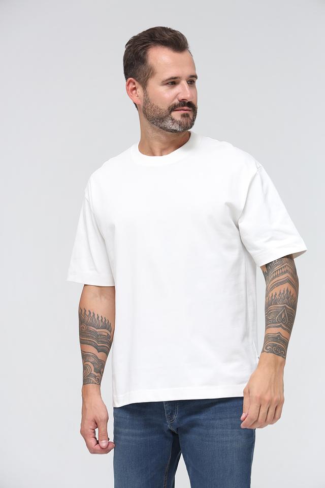 Футболка выполнена из 100% хлопка высокого качества, что обеспечивает комфорт и воздухопроницаемость. Прямой силуэт не сковывает движений, а круглый вырез горловины добавляет лаконичности.