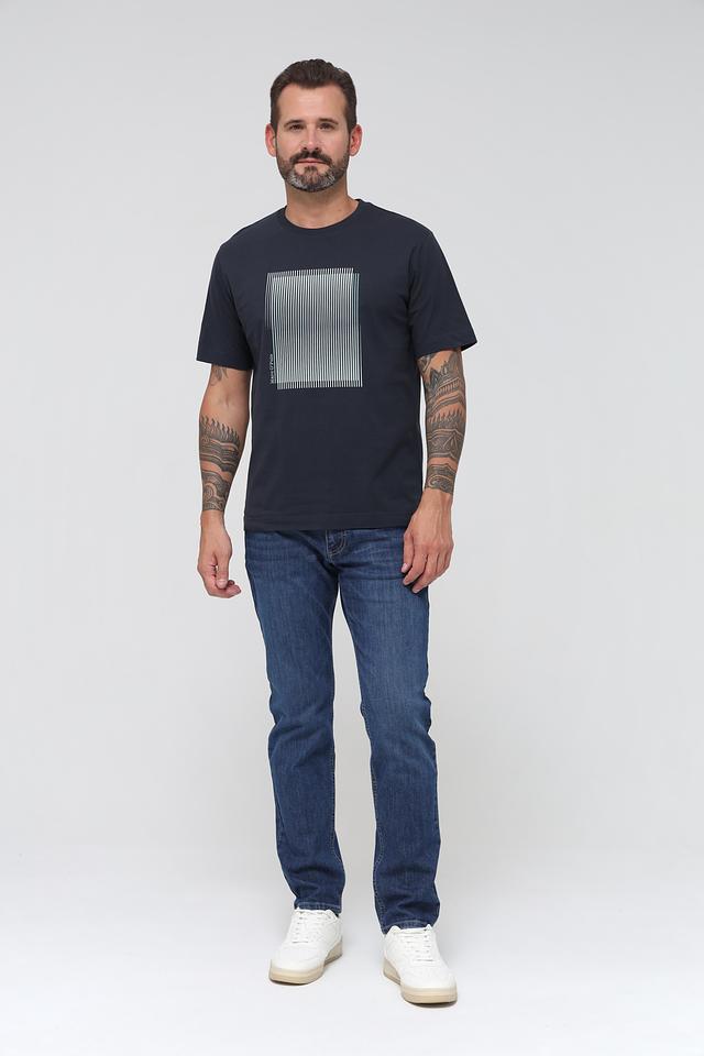 Мужская футболка Marc O Polo тёмно-синего цвета с оригинальным геометрическим принтом. Изготовлена из 100% хлопка, обеспечивающего комфорт и воздухопроницаемость. Стильный и лаконичный дизайн делает эту футболку отличным выбором для повседневного гардероба. Состав: хлопок 100%