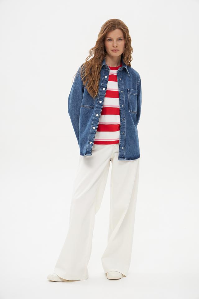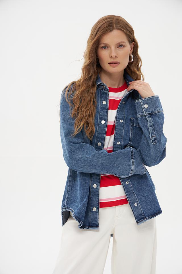 Состав ткани: 79% хлопок, 20% вискоза, 1% эластан. Рубашка идеально подходит для создания повседневных образов, ее можно носить как самостоятельный элемент одежды, так и в качестве легкой куртки поверх футболки или топа.
