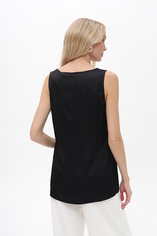 Топ имеет прямой, слегка свободный крой, который не сковывает движений и позволяет создать расслабленный образ. V-образный вырез горловины и тонкие бретельки придают модели женственность и элегантность.
