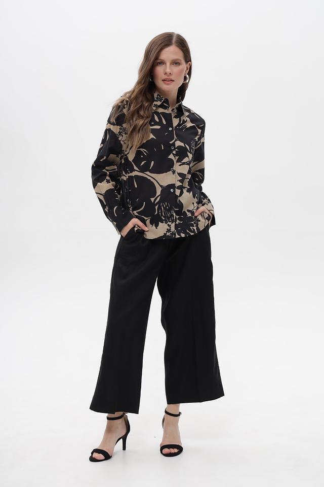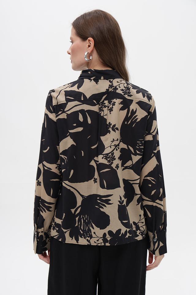 Главная особенность этой блузы – эффектный цветочный принт, который придает ей неповторимый шарм и делает ее отличным выбором для тех, кто ценит оригинальность и стиль. Она прекрасно сочетается с брюками, юбками и джинсами, позволяя создавать разнообразные комплекты на любой случай.