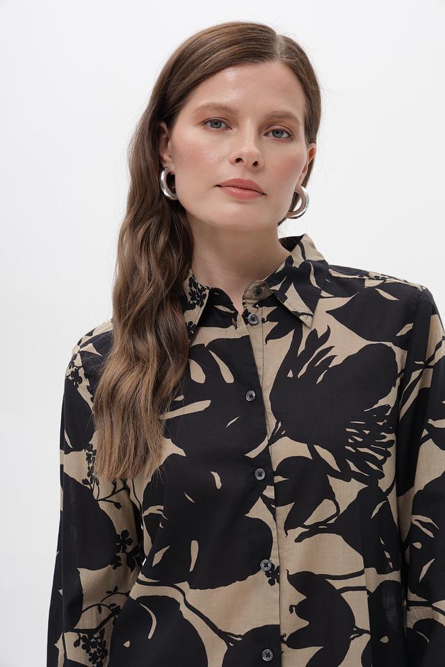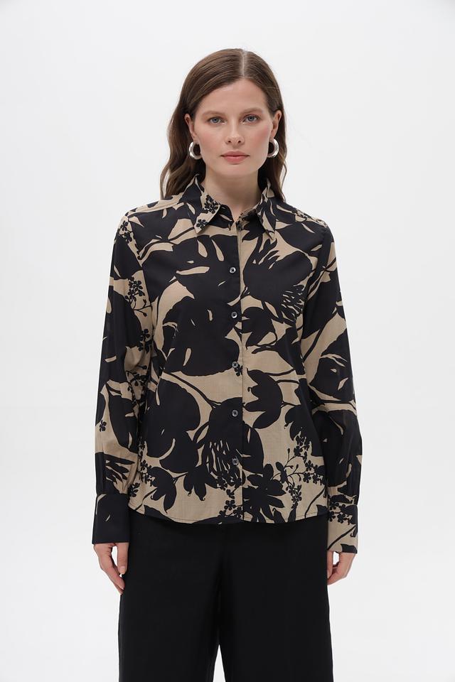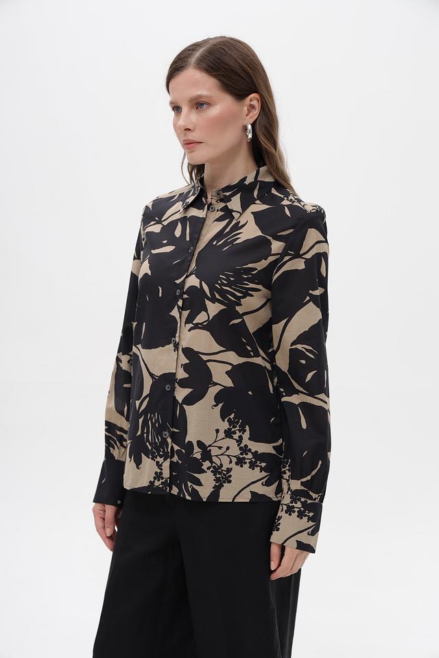 Бежевая блуза Marc O Polo с ярким цветочным принтом выполнена из 100% хлопка. Классический крой с длинными рукавами и застежкой на пуговицы. Идеальный выбор для создания стильного повседневного образа. Состав: хлопок 100%