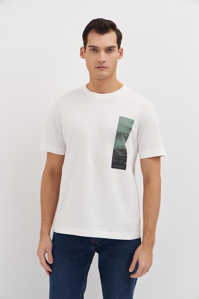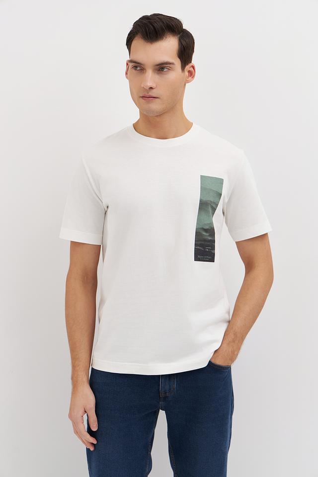 Белая футболка Marc O Polo с оригинальным графическим принтом на груди. Изготовлена из 100% хлопка, обеспечивающего комфорт и воздухопроницаемость. Классический крой и лаконичный дизайн делают эту футболку универсальным элементом гардероба. Состав: хлопок 100%