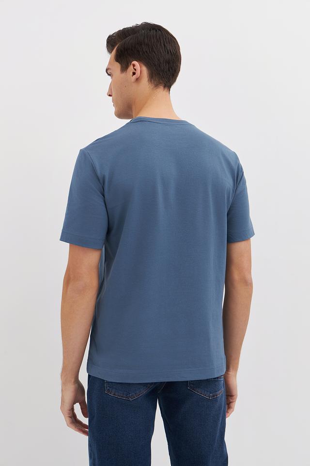 Классический крой футболки обеспечивает свободу движений и подходит для любого типа фигуры. Голубой цвет придает образу свежесть и легкость.
