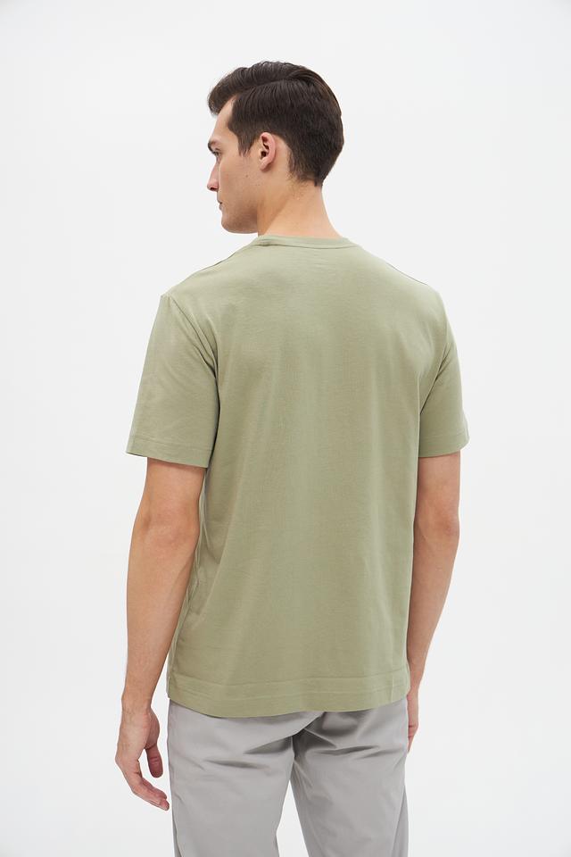 Эта футболка имеет классический прямой крой, который подходит для любого типа фигуры. Цвет хаки придает ей универсальность, позволяя легко сочетать ее с различными элементами гардероба – от джинсов до шорт.