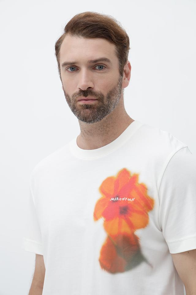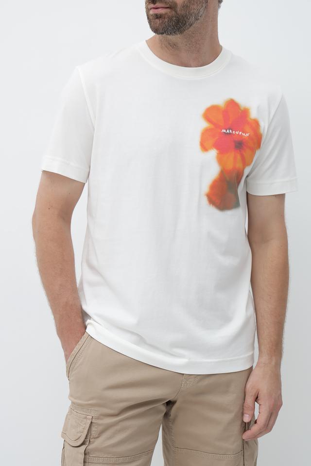 Мужская футболка Marc O Polo белого цвета с ярким цветочным принтом на груди. Изготовлена из 100% хлопка, обеспечивающего комфорт и воздухопроницаемость. Стильный и удобный выбор для повседневного образа. Состав: хлопок 100%