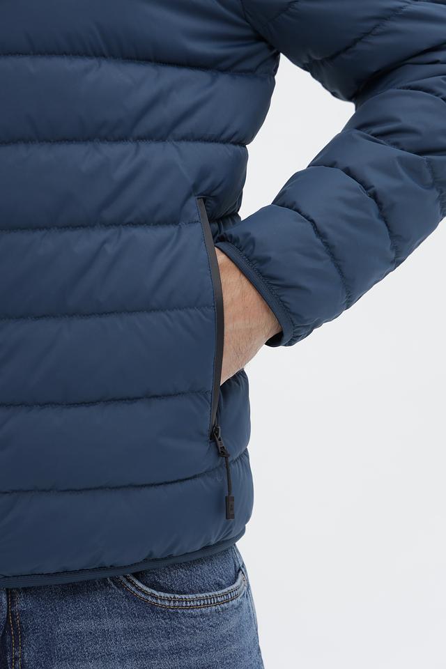 Данная модель идеально подходит для повседневной носки в прохладную погоду. Сдержанный синий цвет куртки легко сочетается с различными элементами гардероба, создавая стильные и функциональные образы. Логотип бренда размещен на левом рукаве.