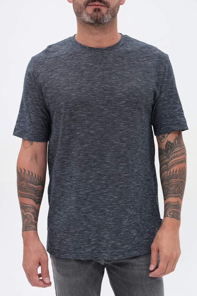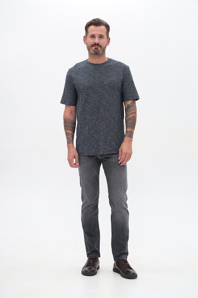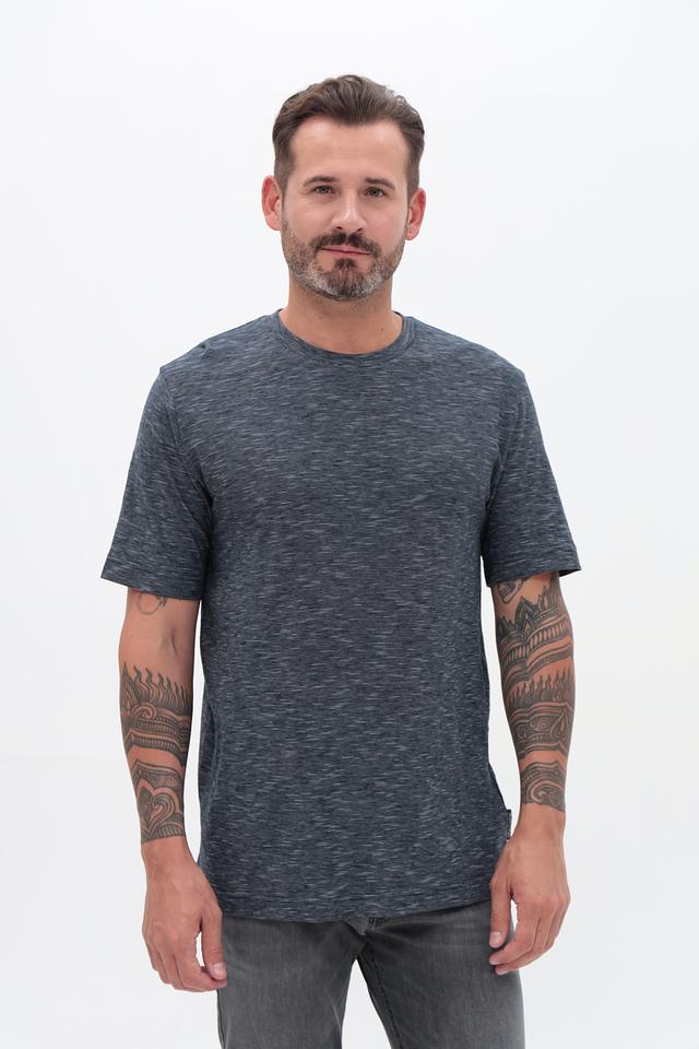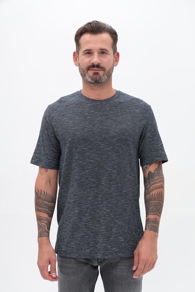 Футболка имеет классический крой, который подходит для любого типа фигуры. Меланжевая текстура придает ей современный и непринужденный вид. Округлый вырез горловины и короткие рукава делают эту футболку идеальным выбором для теплой погоды.