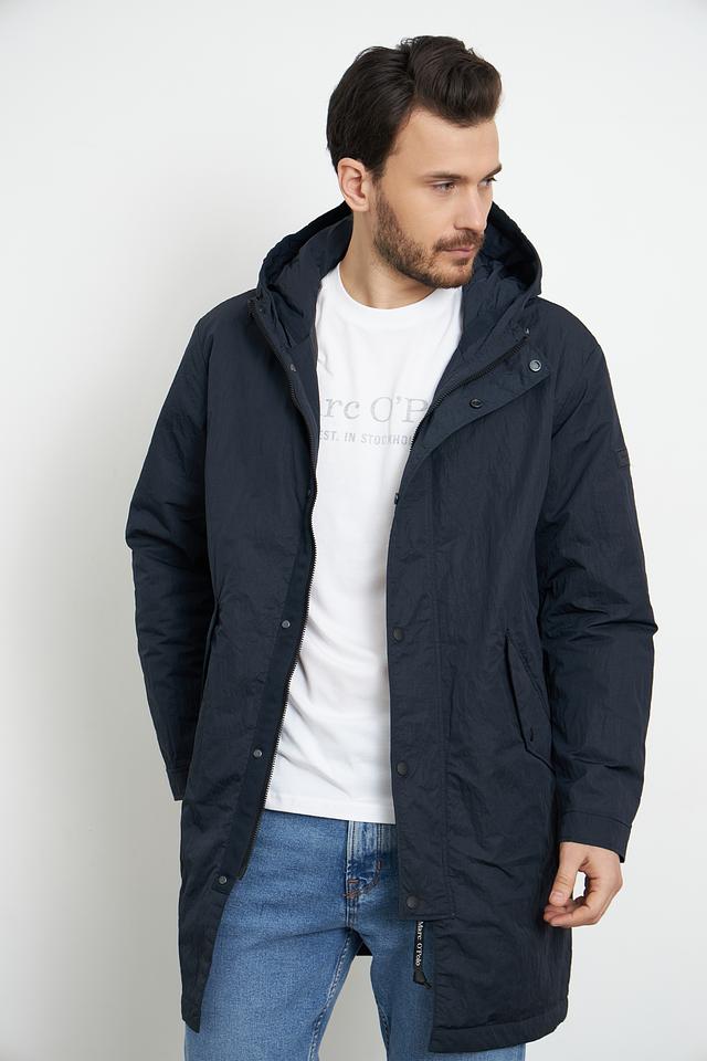 Мужской плащ Marc O Polo тёмно-синего цвета – это стильная и практичная верхняя одежда для защиты от непогоды. Модель выполнена из 100% полиамида, имеет капюшон и застёжку на кнопки. Состав: полиамид 100%