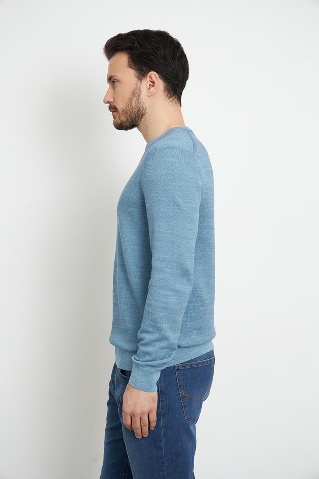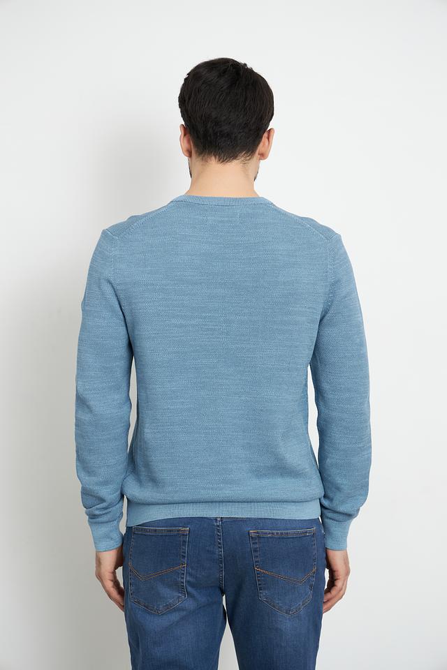 Текстура ткани имеет лёгкую зернистость, что придаёт пуловеру более интересный и благородный вид. Эластичные манжеты и нижний край обеспечивают удобную посадку по фигуре. Состав: 100% хлопок.