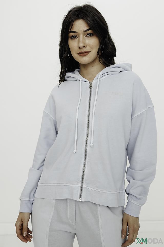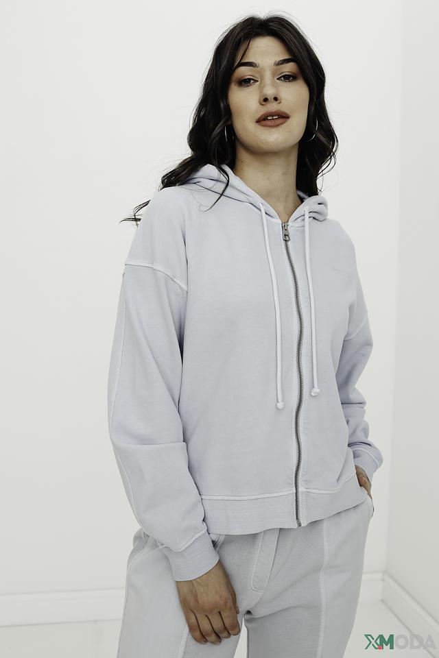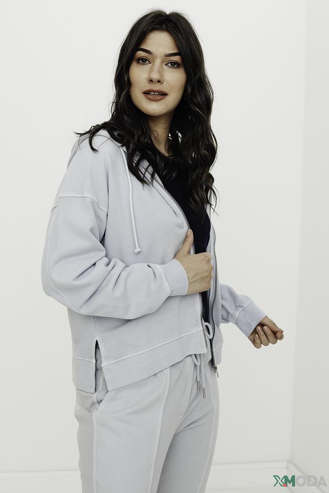Жакет имеет удобную застежку-молнию, капюшон и длинные рукава с манжетами. Благодаря своему лаконичному дизайну, он легко сочетается с различными элементами одежды, позволяя создавать разнообразные образы – от спортивных до более расслабленных.