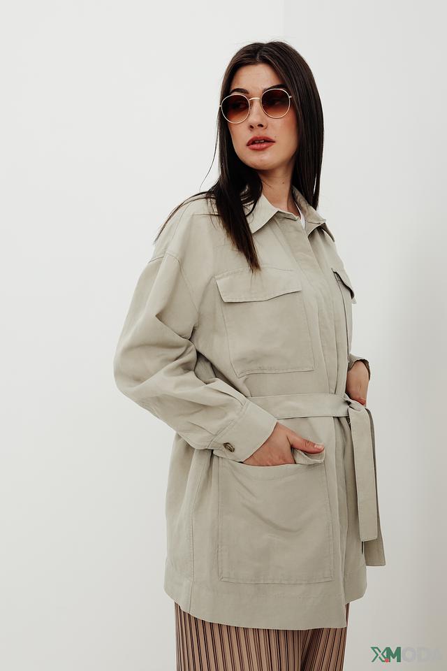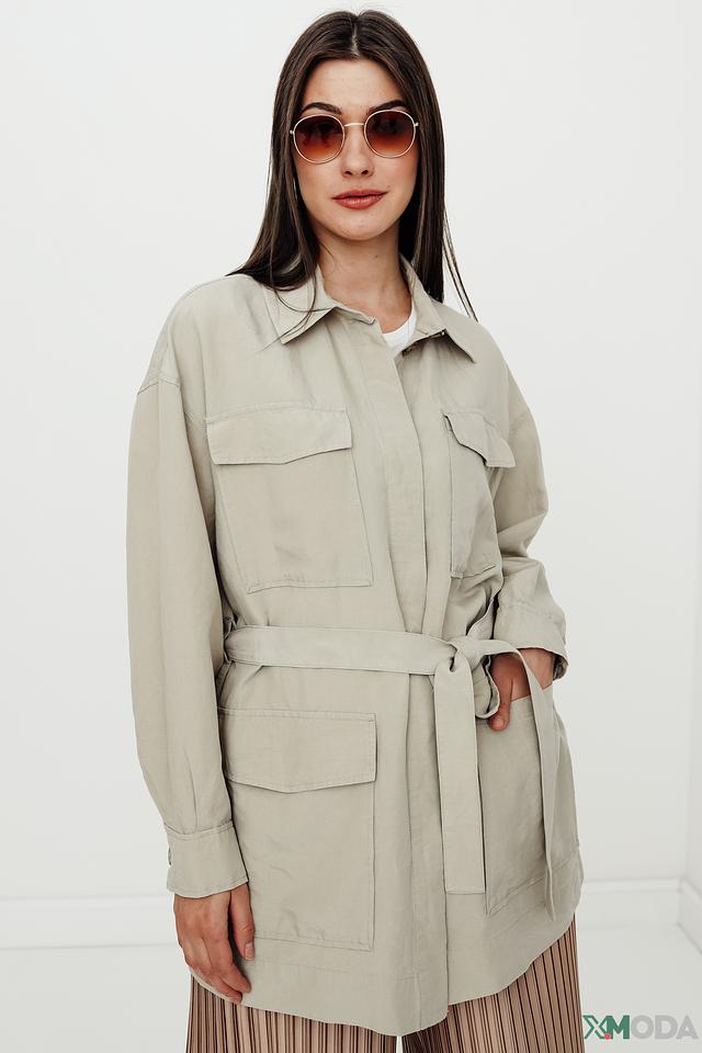 Жакет имеет свободный крой, который обеспечивает свободу движений и комфорт в носке. Застежка на пуговицы, а также пояс в комплекте позволяют регулировать силуэт и создавать различные варианты стилизации.