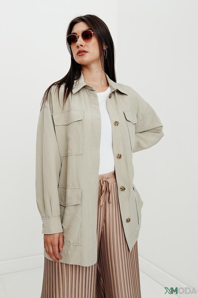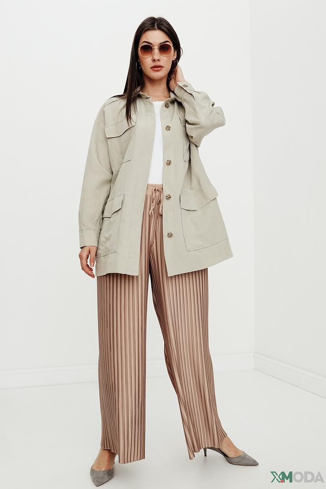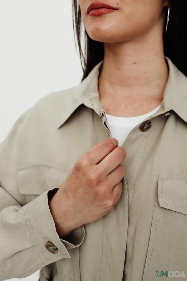 Модель дополнена двумя накладными карманами, которые не только добавляют функциональности, но и подчеркивают лаконичный дизайн. Жакет изготовлен из высококачественного материала, в составе которого 55% лиоцел и 45% лен, что обеспечивает приятные тактильные ощущения и воздухопроницаемость.