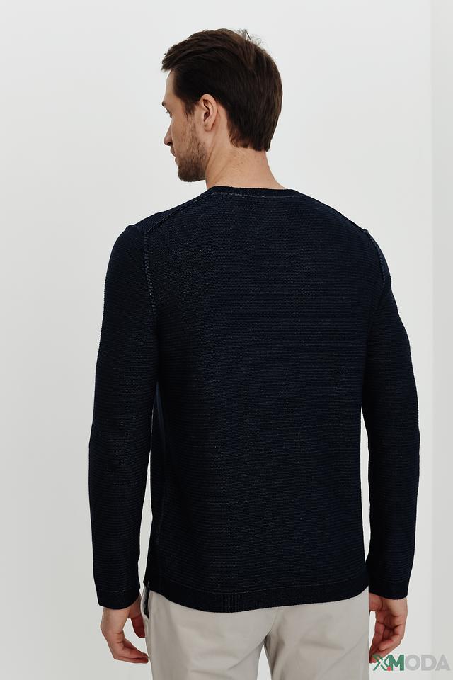 Мужской джемпер Marc O Polo тёмно-синего цвета выполнен из хлопка с добавлением льна. Модель имеет круглый вырез горловины и фактурную вязку, что придает ей стильный и современный вид. Состав: хлопок 65%, лен 35%