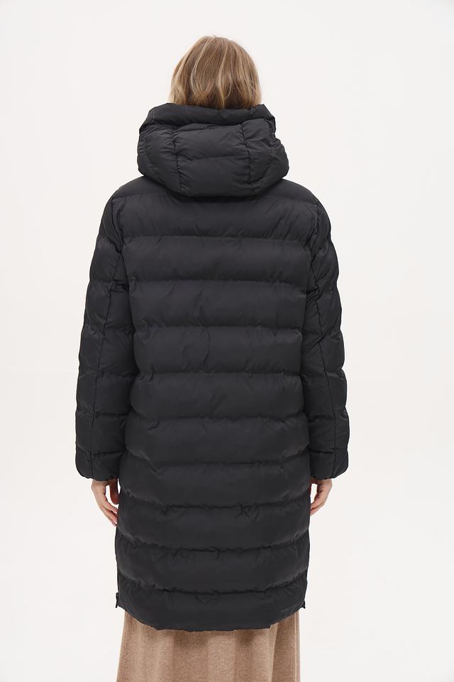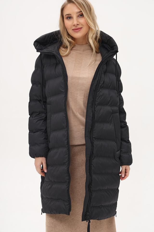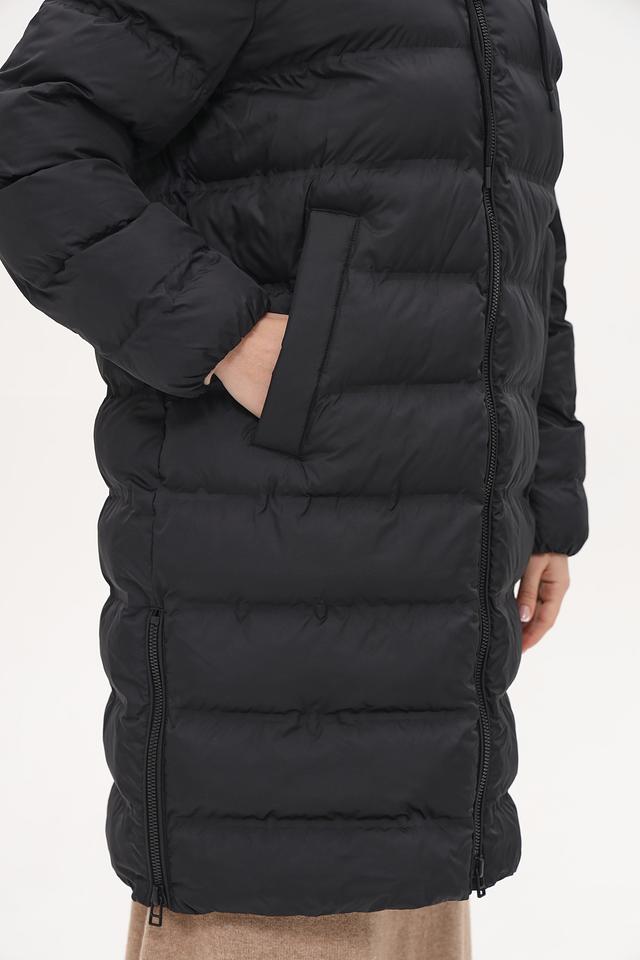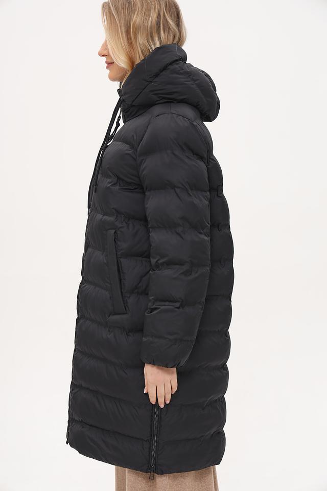 Пальто имеет удлиненный крой, который обеспечивает дополнительное тепло и защиту от непогоды. Капюшон добавляет функциональности, позволяя защититься от ветра и дождя. Застежка-молния во всю длину позволяет легко надевать и снимать пальто, а также регулировать степень теплоизоляции.