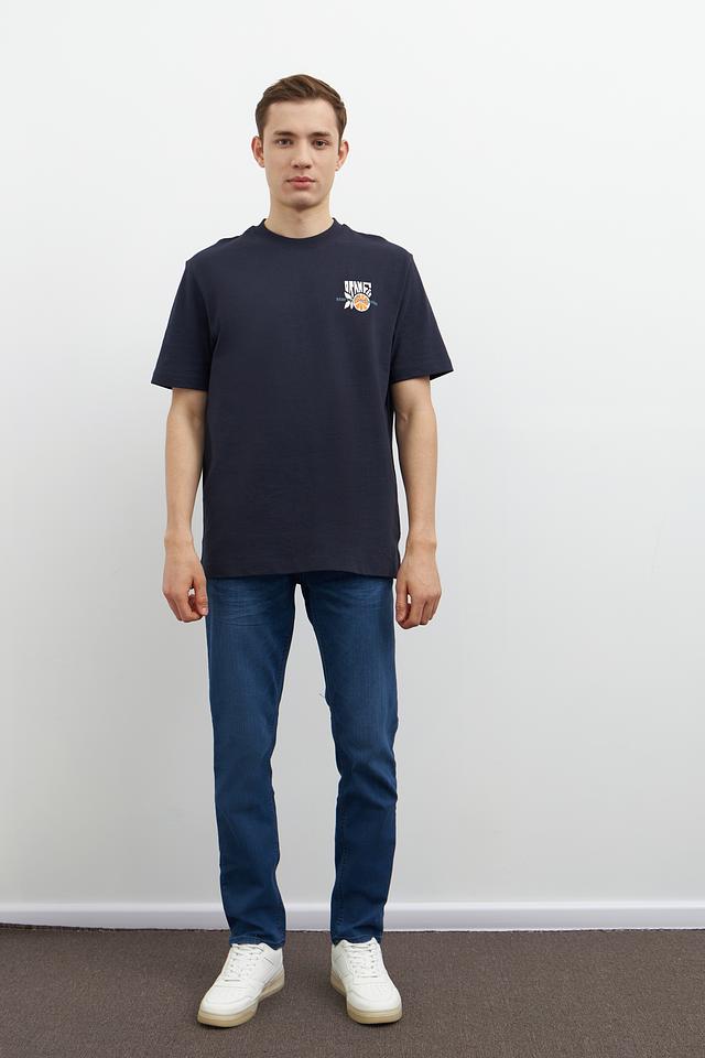 Мужская футболка Marc O Polo DENIM тёмно-синего цвета с оригинальным принтом в баскетбольном стиле. Изготовлена из 100% хлопка, обеспечивающего комфорт и воздухопроницаемость. Состав: хлопок 100%