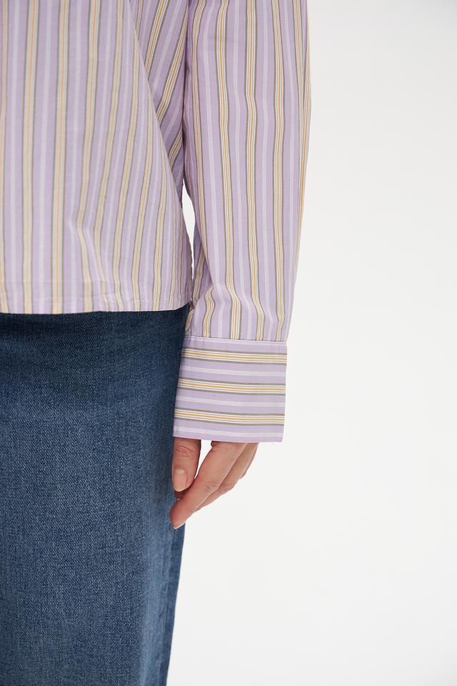 Нежный полосатый принт добавляет рубашке изысканности и легкости. Нагрудный карман не только функционален, но и является стильным акцентом. Эта рубашка идеально подойдет для создания повседневных и более элегантных образов.