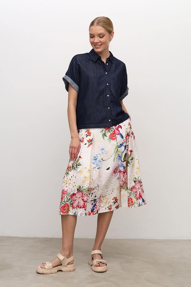 Особенности: Юбка идеально подходит для тёплой погоды, благодаря лёгкой и дышащей ткани. Цветочный принт добавляет образу свежести и женственности.
