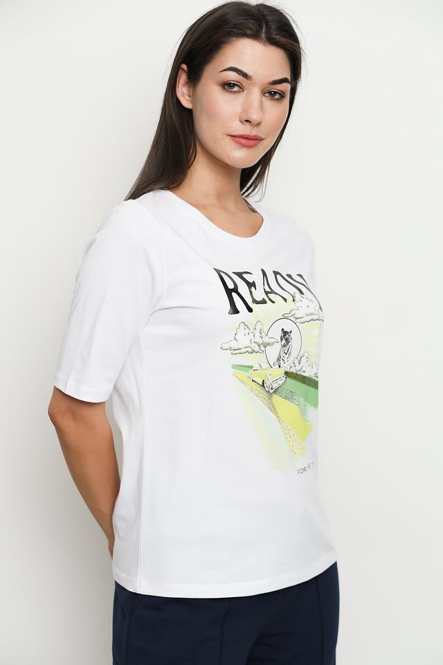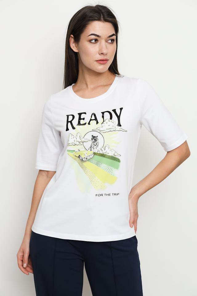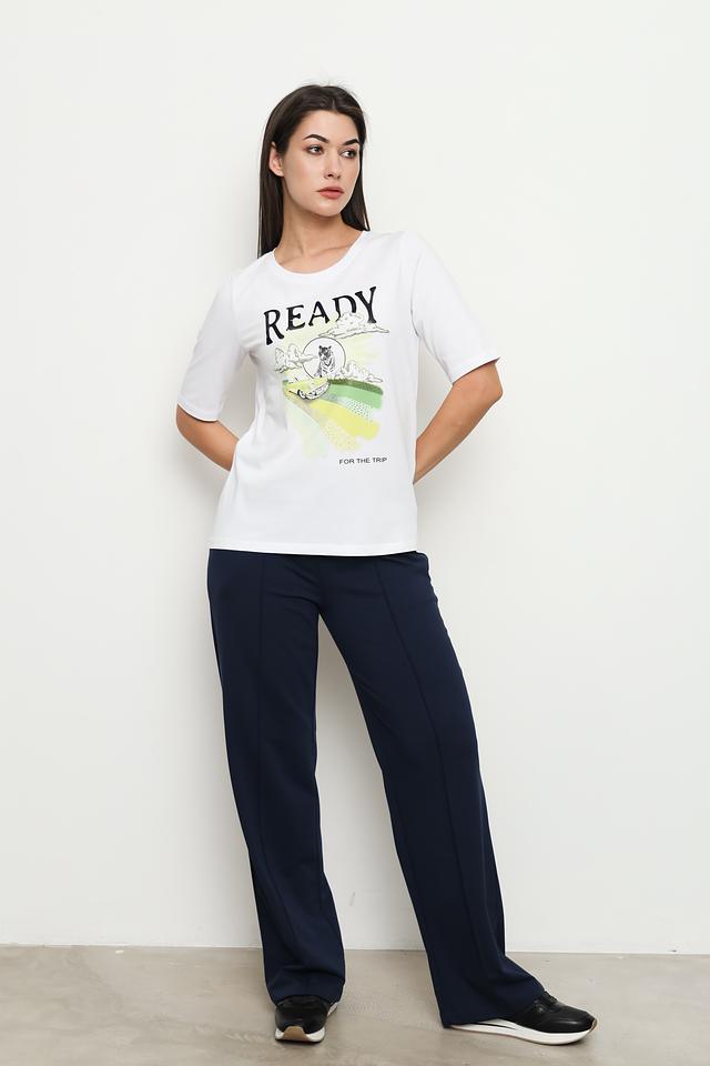 Белая футболка Margittes с ярким принтом "READY FOR THE TRIP" станет отличным дополнением к вашему образу. Изготовлена из 100% хлопка, обеспечивая комфорт и воздухопроницаемость. Состав: хлопок 100%