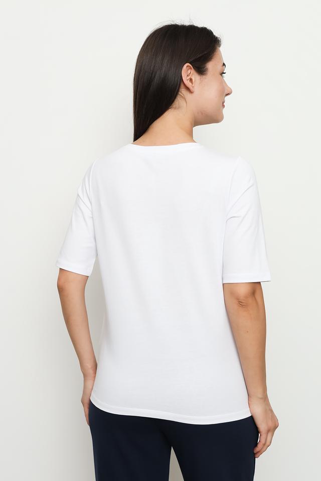 Футболка прекрасно сочетается с джинсами, шортами, юбками и брюками. Ее можно носить как самостоятельно, так и под жакет или кардиган. Этот универсальный предмет гардероба подойдет для создания различных образов – от casual до более элегантных.