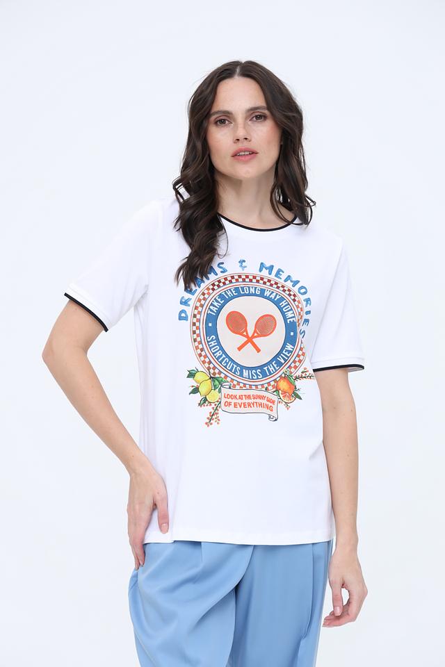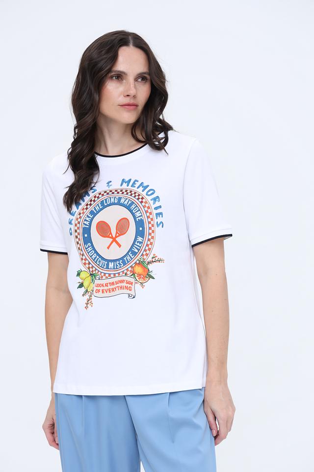 Белая футболка от Margittes с ярким принтом в стиле ретро. Модель выполнена из 100% хлопка, обеспечивая комфорт и воздухопроницаемость. Футболка станет стильным дополнением к вашему образу. Состав: хлопок 100%