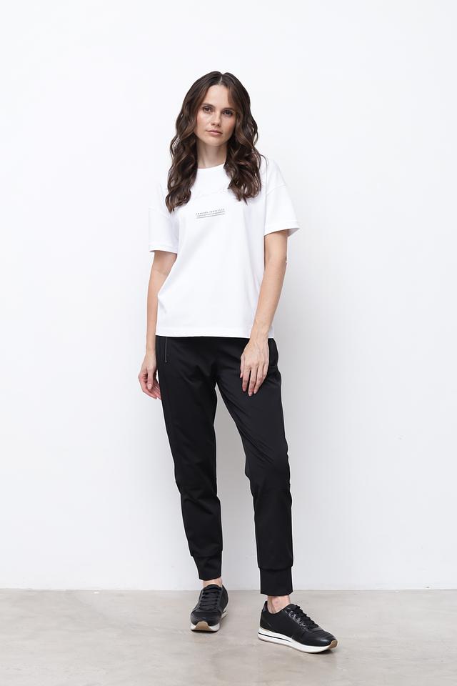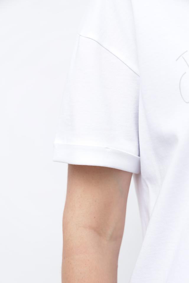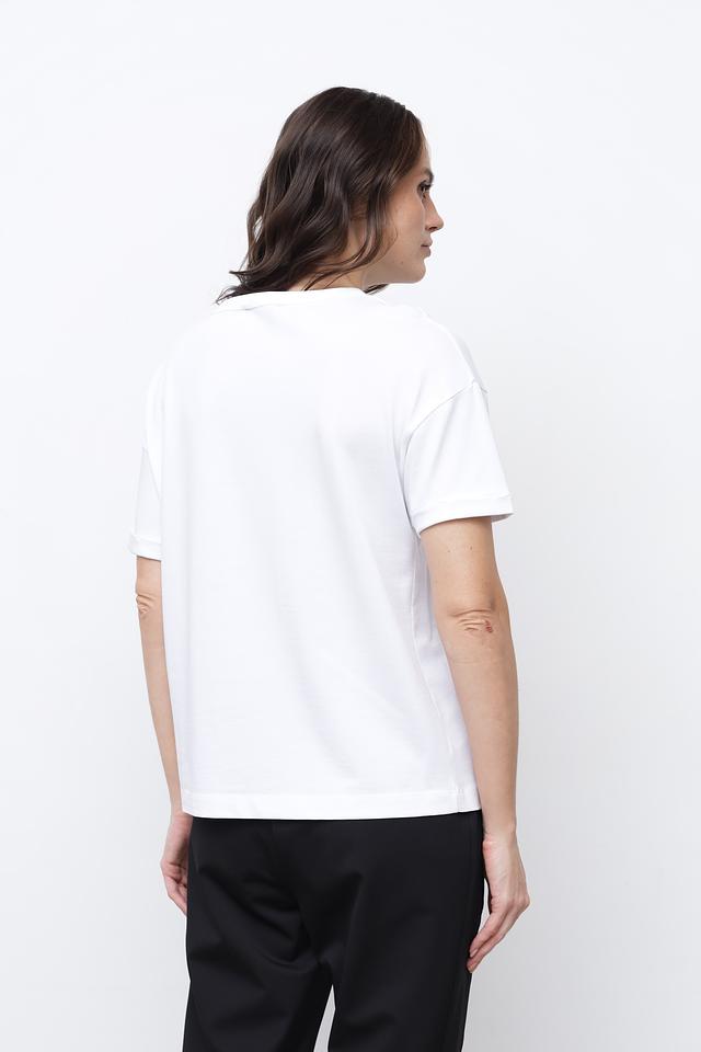 Эта модель прекрасно сочетается с джинсами, брюками, шортами и юбками. Ее можно носить как самостоятельно, так и под жакет или кардиган. Белый цвет делает футболку универсальной и легко комбинируемой с другими элементами гардероба.
