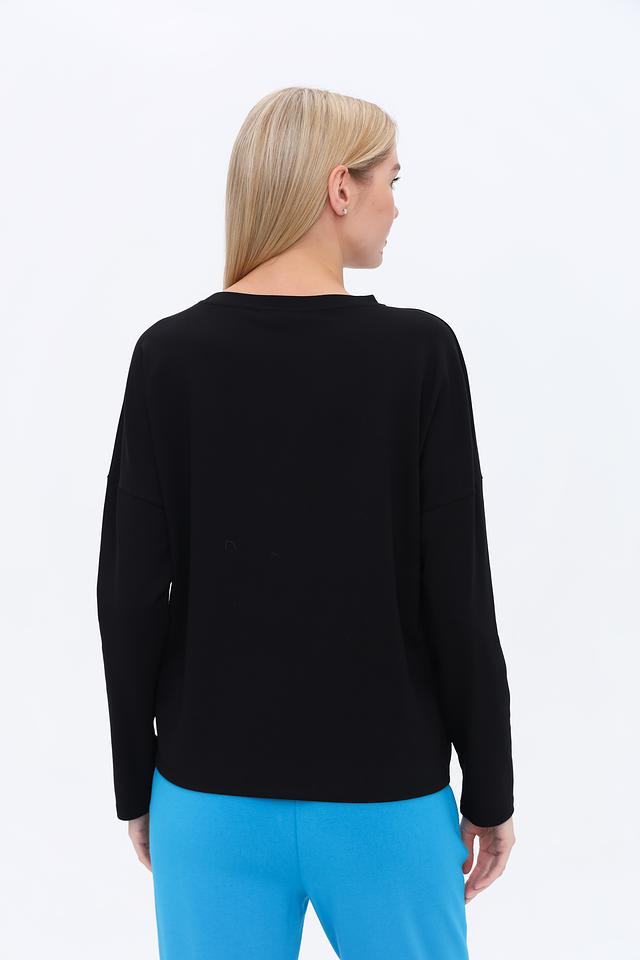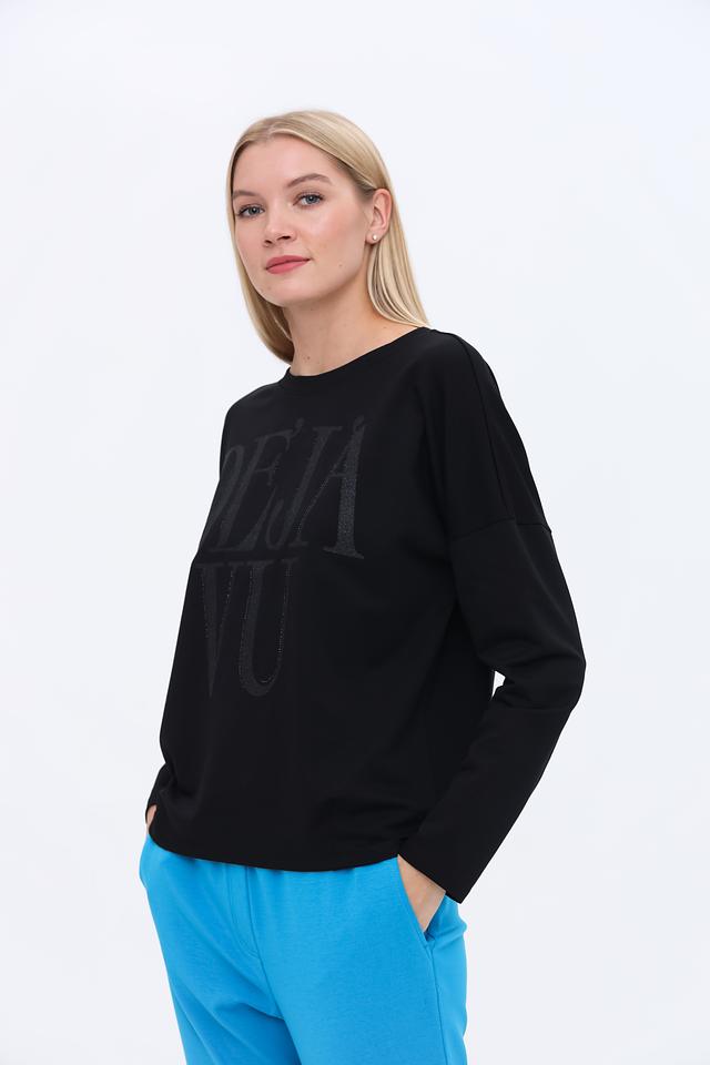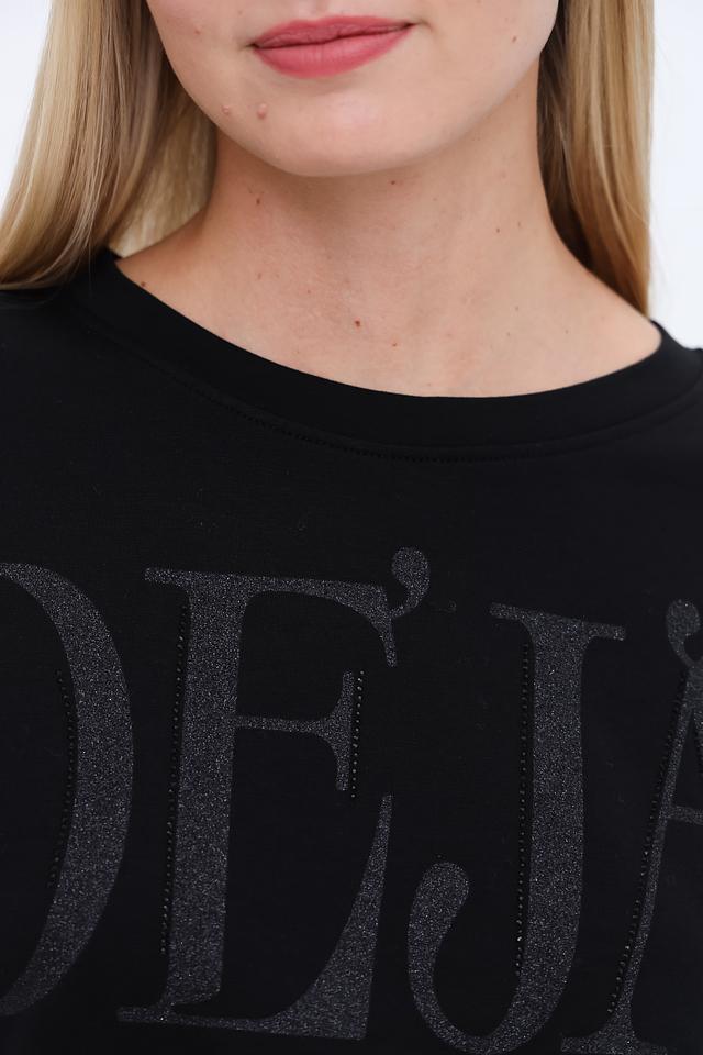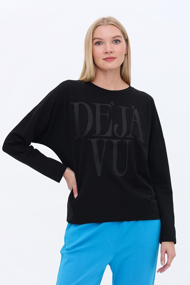 Чёрный пуловер от Margittes с надписью "DEJA VU" — стильная и комфортная модель на каждый день. Изготовлен из мягкого и приятного к телу сочетания модала, хлопка и эластана, обеспечивающего удобную посадку. Состав: модал 49%, хлопок 48%, эластан 3%